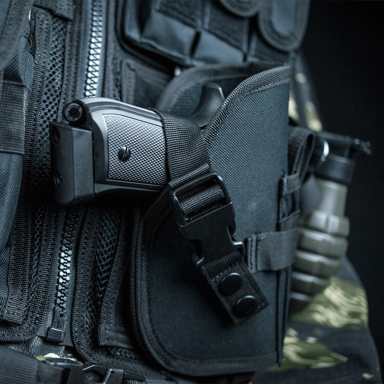 4 built in rifle magazine pouches , double stackable. Removable triple pistol magazine pouch. Crossdraw Pistol Holster, variable placement. Duty belt with built in pistol mag pouches. Multi pouch with velcro attached shell loops. Utility radio pouch, adjustable side straps, adjustable shoulder straps. Integrated radio and hydration line shoulder guides. Reinforced anti slip shoulder padding. Built in hydration pouch, Large velcro back panel, and Large back molle panel.